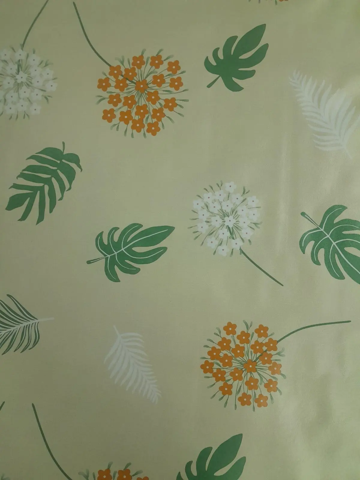 Hule estampado Color cod: 18 – 75% PVC/25% poliester – Ancho en Mts: 1,40 – Peso/rinde:180g/m2. La Tela es aplicable para: Manteles, Individuales, Fundas.