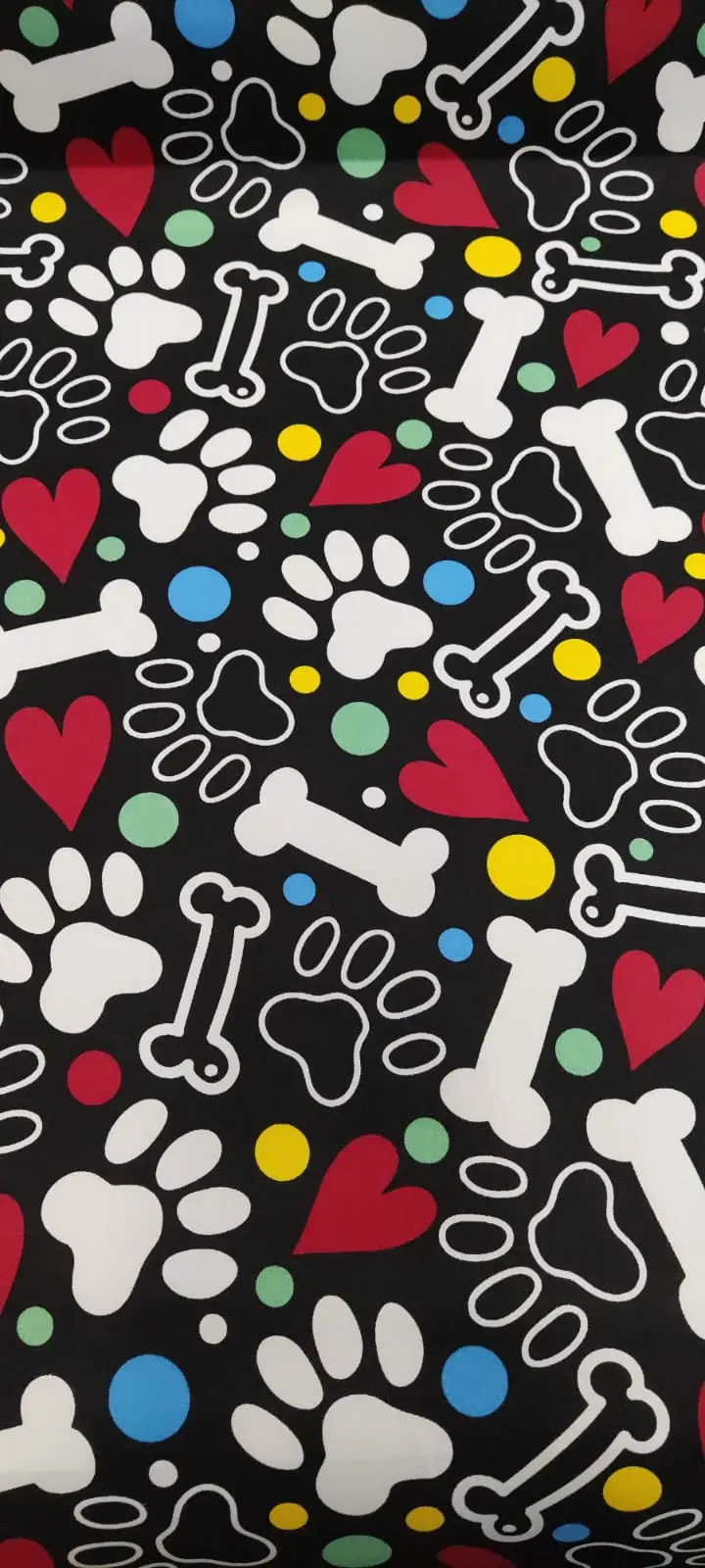 Loneta estampada huesos y huellas negro – 100% poliester – Ancho en Mts: 1,50 – Peso/rinde:125g/m2. La Tela es aplicable para: Tapiceria, Mochilas, Resistente Al Agua.