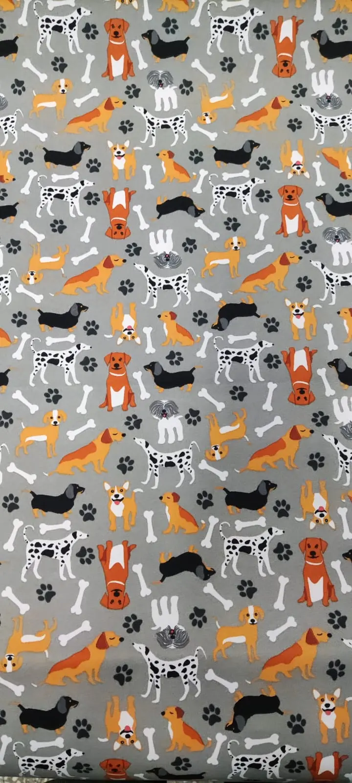 Loneta estampada perritos gris – 100% poliester – Ancho en Mts: 1,50 – Peso/rinde:125g/m2. La Tela es aplicable para: Tapiceria, Mochilas, Resistente Al Agua.